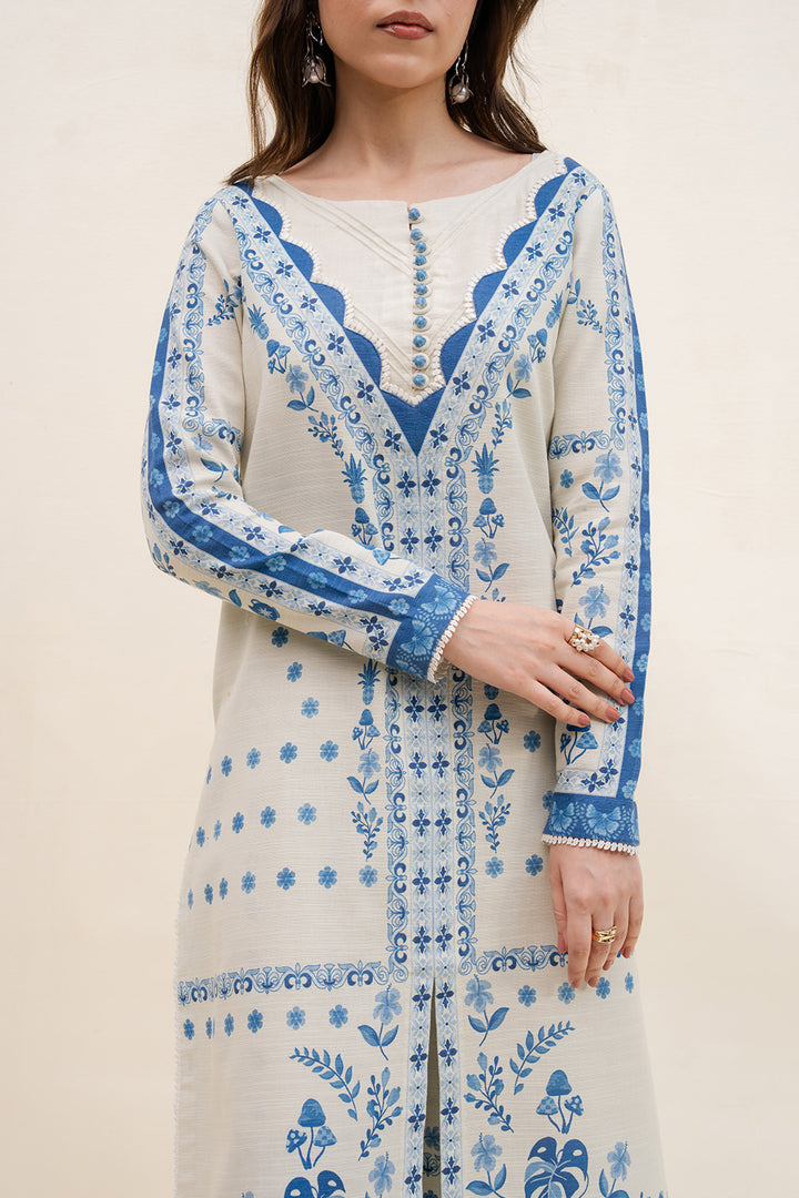Embrace serene sophistication with our 3-Piece Pret in Blue Snow, a refreshing blend of elegance and comfort. Crafted from soft Khaddar for the shirt and bottom, and complemented by a cozy Herringbone Shawl Dupatta, this ensemble radiates timeless charm for stylish winter days.