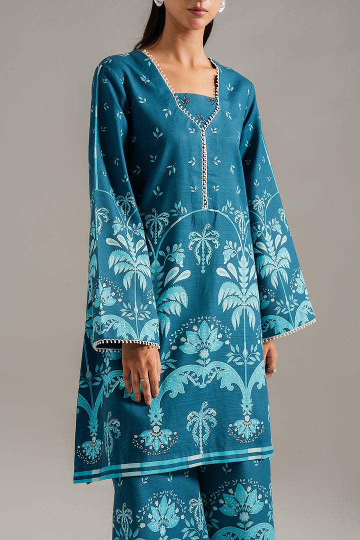 Step into effortless elegance with our 2-piece pret set in a rich, serene blue. Tailored from premium khaddar for both the shirt and bottoms, this ensemble offers cozy sophistication—perfect for chic, everyday winter style.