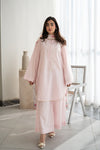 Soft and graceful, this Light Lilac 3-Piece Pret is a vision of delicate charm. The lawn shirt features a round neckline with a center-front slit adorned with embroidered buttons, complemented by scattered motifs across the front and straight sleeves finished with scalloped embroidered hems. Paired with a relaxed straight-fit cambric cotton trouser and a silk printed dupatta with soft floral borders on all sides, this ensemble exudes effortless elegance.