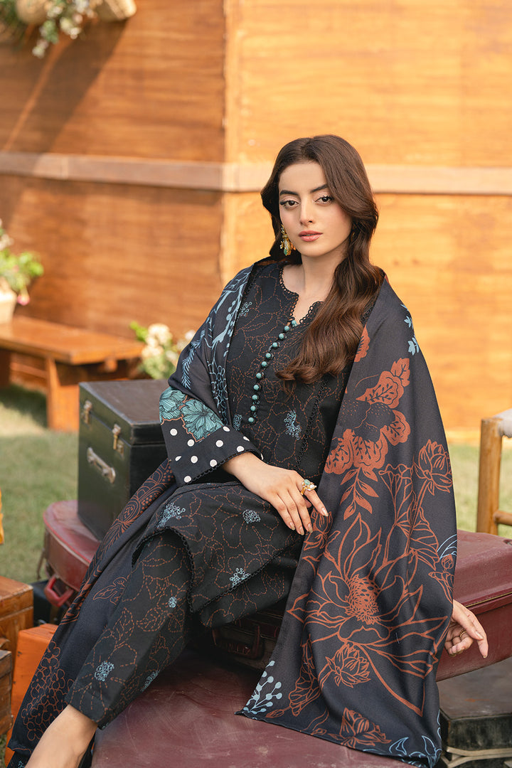 Make a bold style statement with our 3-piece pret set in the striking Black Ice shade. Crafted from premium khaddar for the shirt and bottoms and paired with a beautifully printed wool shawl, this ensemble blends warmth, elegance, and modern sophistication for the perfect winter look.