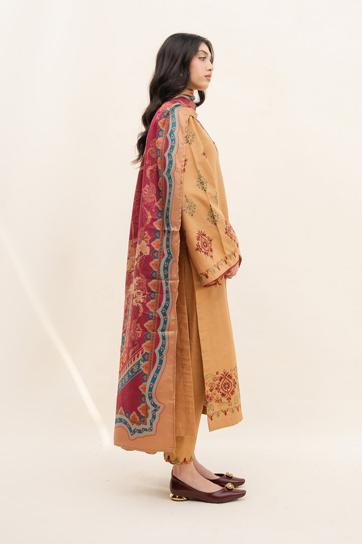 Illuminate your winter style with our 3-Piece Pret in Golden, a radiant blend of warmth and sophistication. Tailored from luxurious Khaddar for the shirt and bottom, and elevated with a rich Herringbone Shawl Dupatta, this ensemble embodies timeless elegance with a touch of opulence.